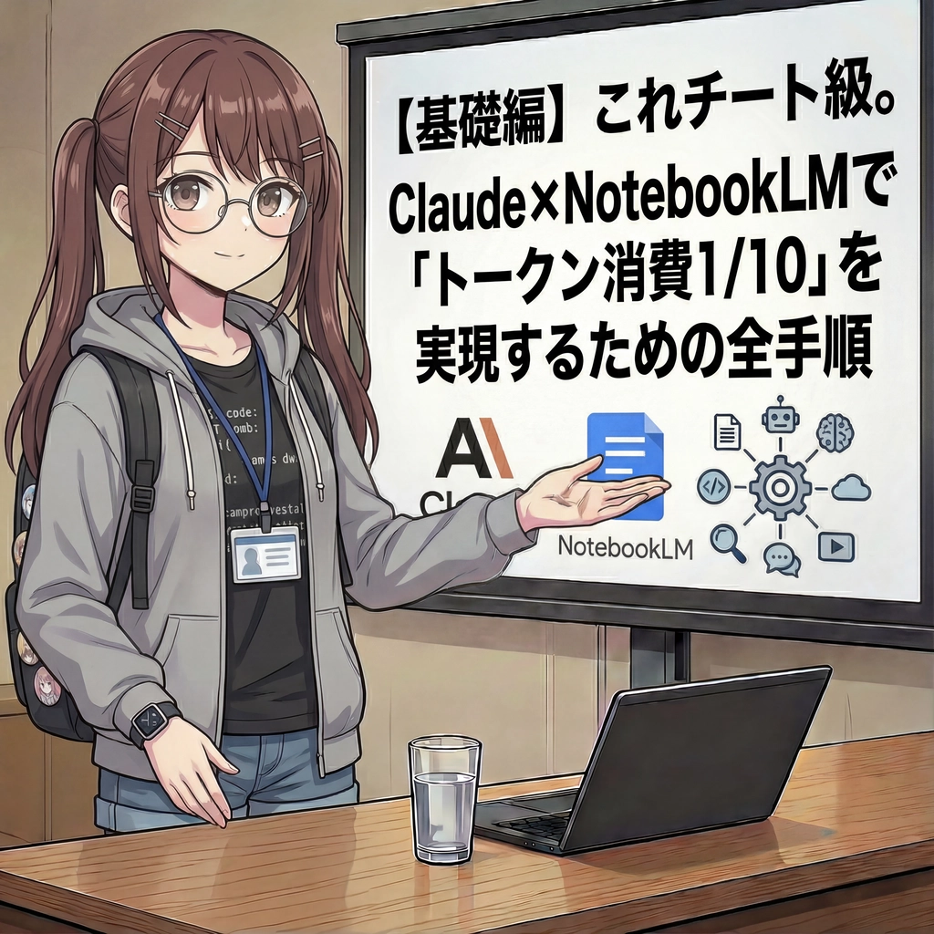 「Claudeがすぐ忘れる」「PDFを投げたら制限が来た」「トークン消費が激しい」——この3つの悩み、今日で終わりにしましょう。NotebookLMとClaude Codeを繋ぐだけで、Claudeのトークン消費を抑え利用コストが1/10に...