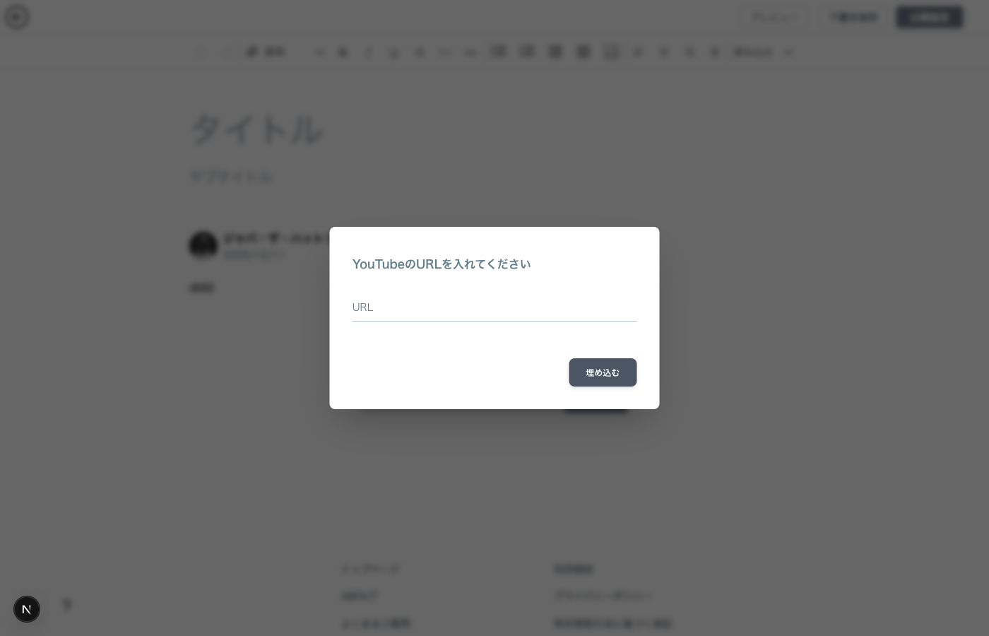 ツールバーの「埋め込み」ボタンから、さまざまなコンテンツを埋め込むことができます。 URLを貼り付けるだけで、自動的に埋め込みコンテンツが生成されます。